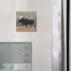 Ímã de Alce Touro. Um grande alce macho caminha pesadamente pela vegetação rasteira em uma área de colinas arenosas no sudeste de Alberta, Canadá. Alces parecem fora de lugar neste terreno seco e arenoso que tem muito pouca água para sustentar a vegetação aquática de que os alces normalmente se alimentam.