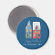 Esta ilustração encantadora mostra pinturas brancas feitas à mão de quadros brancos de uma vila de inverno alpinismo alpino chalé acolhedor e crianças de inverno diversão na natureza com paisagem branca de neve, pequenas casas, flocos de neve, pinheiros e um lago gelado com pessoas de patinação em um fundo vermelho de neves azul. Arte original de Caroline Bonne Müller