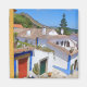 Aldeia mediterrânica de aquarelas com casas brancas e azulejos vermelhos com vista à rua em Portugal