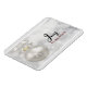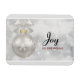 Um ímã com um design de feriado mágico. Apresentando uma bola prateada de Natal com decorações em flocos de neve e terminando com um bonito arco prateado. O fundo é uma ilustração de luzes de prata com estrelas elegantes espalhadas por toda parte. Texto diz: Joy to the world.