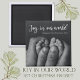 Celebre o mais novo pacote de alegria nesta temporada de festas com este ímã de primeiro Natal do bebê! Com sua paleta de cores clássica em preto e branco e design moderno, este ímã de foto será uma lembrança querida por anos. Perfeito para novos pais, avós, tias e tios, e qualquer um tão obcecado pelo seu pequeno quanto você!