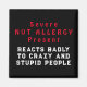Todos nós ouvimos falar de alergias a nozes e a alergias a nozes que... esta é uma maneira de mostrar que você tem um tipo diferente de alergia a nozes - contra loucos humanos! "Alergia severa à Nut Presente - Reage mal a pessoas malucas e estúpidas."