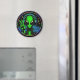 alienígena verde limão dando um sinal de paz, vestindo fones de ouvido, em uma água com estrelas no céu noturno. Legal arte aérea extraterrestre de outros mundos.