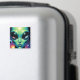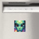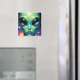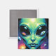 Íman extraterrestre. Um design cativo de outro mundo com uma alienígena extraterrestre com grandes olhos abaulados segurando as reflexões de outros planetas, incluindo a terra neles.