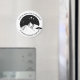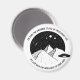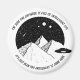 Magneta engraçada com paisagem de montanha ilustrada e espaçonave deixando a Terra. A citação diz: "Tenho certeza de que o universo é cheio de vida inteligente. Foi inteligente demais para vir aqui." — Arthur C. Clarke
