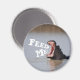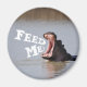 Foto de um hipopótamo meio submerso com sua cabeça saindo da água e suas mandíbulas maciças abertas em larga escala exigem alimentação. Imã de geladeira engraçada apropriada.