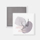 The composition features strong yet refined lettering flowing across a soft abstract background of muted neutral tones and subtle watercolor texture. The contrast between vertical structure and organic forms creates a calm, grounded aesthetic.