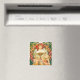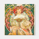 Magnet com o Reverie litográfico de Alphonse Mucha (1897). O retrato de uma mulher de vestido branco lê um livro, sentado diante de flores cor-de-rosa e laranja. Um presente de excelente para fãs de Arte Nouveau e de Arte Boêmia.