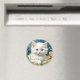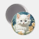 Magnet com um gatinho no estilo Art Nouveau de Alphonse Mucha! Um gatinho branco e fofo com poses azuis com flores amarelas. Um presente bonito para amantes de gatos e colecionadores de Art Nouveau!