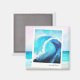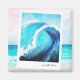 Uma representação vibrante de uma onda oceânica enrolada em tons de azul é capturada dentro de uma estrutura em estilo Polaroide, colocada contra um pano de fundo tranquilo de paisagem sazonal. A frase "Ame o Oceano" está elegantemente inscrita abaixo da onda.