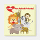 Um leão, girafa, macaco, zebra, e elefante com um coração vermelho e texto que lê Love Our Animal Friends on T-shirts, carroçarias, bíblias, cobertores, travesseiros, relógios de parede, cartas, correntes-chave, mousépias, canecas, bolsas, autocolantes e muito mais!