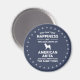 Você não pode comprar felicidade, mas pode adotar uma Akita americana e isso é bonito muito a mesma coisa em letras brancas maiúsculas sans serif com a silhueta de uma raça de cão tipo spitz. Enquadrado com círculo de pegadas.