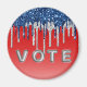 A bold, modern patriotic design featuring shimmering blue glitter melting into silver drips over a rich red gradient background. The sparkling textures and dramatic drip effect create a dynamic, eye-catching composition that blends festive glamour with classic red, white, and blue symbolism. Glitter drips are simulated in the artwork.