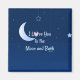 Eu te amo na lua e nas costas, design de texto branco no céu noturno