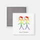 Este ímã apresenta um design doce e sincero perfeito para celebrar um casamento. O gráfico mostra duas mulheres, na forma de figuras elegantes de palitos, de mãos dadas. Os números são coloridos num belo arco-íris, simbolizando amor e diversidade. Esta peça é uma maneira maravilhosa de trazer um toque coeso e significativo para a sua papelaria ou favores de casamento, celebrando sua união com cada detalhe.