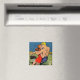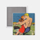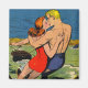 Ilustração colorida de um beijo de casal enquanto esquiava atrás de um barco. De uma revista em quadrinhos vintage