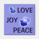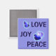 Este ímã tem uma fotografia de borboletas com as palavras amor, alegria e paz!