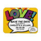 Personalize com seus nomes e detalhes para anunciar a data de seu evento especial. O pop de quadrinhos com arte tem o tema moderno, divertido design, perfeito para casamentos, chás de panela, chás de fraldas, batismos, festas de noivado, comemorações de aniversário, graduações, festas de aniversário e outros eventos especiais ao longo do ano! Uma design legal, moderna e divertida que coloca o golpe no seu dia. Desenvolvido pela ComicBookPop © em www.zazzle.com/comicbookpop*