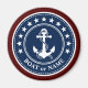 Íman na moda vermelho, branco e azul redondo, com uma âncora náutica personalizada com 13 estrelas e o seu nome personalizado do barco, nome da família ou outro texto desejado. Faz um presente excelente para qualquer ocasião.