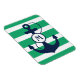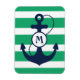 Listras náuticas verdes Kelly com âncora azul marinho e monograma.