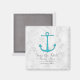 Perfeito para um casamento temático náutico é esta Imã salve a data de Âncora Rústica com uma âncora de barco turquesa num fundo de mármore de cinza clara. Esta imã salve a data clássica e simples é fácil de personalizar com seus detalhes de casamento. Localize mais opções de personalização clicando em Personalizar.