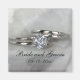 Personalize os elegantes Anéis de Casamento na Cinza Salve o Magneta de Quadrados de Data com os nomes pessoais da noiva e do noivo e a data específica da cerimônia de casamento para criar um favor exclusivo do partido, guarde o presente ou salve a data. Este casamento clássico e personalizado mantém o ímã de datas com uma fotografia digitalmente melhorada de um anel de noivado de diamante e conjunto de bandas de casamento com um fundo de cinza macia.