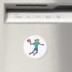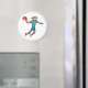 O jogador de handebol salta com a bola à mão pronta para jogar e marcar um gol.
