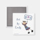 Um ímã giro para mostrar toda a trabalho de arte do seu filho. Design apresenta um anjo segurando uma placa que diz "arte". com
