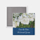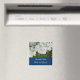Lindas drangas brancas com sotaque de folhagem verde-escura... esta elegante salva a data. Uma fronteira azul marinho acentua nomes e data do casamento. Personalizar conforme desejado.