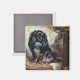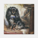 Ilustração Vintage de animais de estimação imagem com um filhote preto de brinquedo inglês giro. Uma cena muito elegante com um cobertor de tapete de pele e o monte de uma espada real.