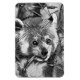 Retrato gráfico de um panda vermelho giro em preto e branco