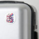 Uma garota anime fofa em um unicórnio com arco-íris, borboletas, flores e balões em adesivos de Festa de aniversário rosa, azul e púrpura. Em roxo, rosa e azul.