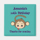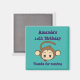 Um belo ímã comemorativo de aniversário. Personalizar com um nome e evento. Mensagem no final diz obrigados para vir. No centro há uma ilustração de um macaco-marrom com a língua saindo. Pareces atrevido e malicioso. Desenhado em um estilo kawaii adorável.