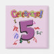 Presentes de aniversário de 5 para rapazes ou raparigas. Cercado por confetti, Colorful design tem Celebrate e um roxo 5. Também estão disponíveis camisas, roupas para bebês, favoritos para festas, canecas para guardar e muito mais.