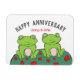 Sapos personalizados em um liilypad com o imã do aniversário de casamento de corações vermelhos Uma maneira fofa e divertida de felicitar um marido e uma esposa pelo seu dia especial. Para personalizar os nomes do casal, bem como a mensagem dentro mostrada, clique em personalizar. Uma placa correspondente também está disponível neste design moderno.