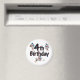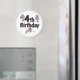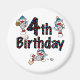 Três pequenos macacos-meias vestindo bonés azuis de beisebol estão lançando, deslizando e subindo no taco no nosso design Sock Monkey Baseball 4º Aniversário com macacos-meias e texto legal que diz "4º Aniversário".