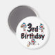 Três pequenos macacos-meias vestindo bonés azuis de beisebol estão lançando, deslizando e subindo no taco em nosso design Sock Monkey Baseball aniversário de 3 anos com macacos-meias e texto legal que diz "3º aniversário".
