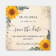 Uma tendência Salve a data para uma festa de aniversário 40th (ou qualquer idade). Um fundo branco na moda, decorado com girassóis, eucalipto verde, folhagem de ouro e pó de ouro falso. Personalize e adicione uma data, nome e texto. O texto: Salvar a Data é gravado com um script de estilo com letra de tendência grande com alternâncias.