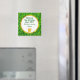 Um íman comemorativo/de promoção de aniversário (ou outro evento). Com uma ilustração de uma caneca de cerveja festiva. O fundo é desenhado com uma nova design de primavera que mostra um campo de folhas de trevo num verde natural exuberante. Personalize com seus detalhes escritos no centro em um quadro branco com uma borda de folha de ouro FAUX. Perfeito para um primavera.