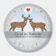 Celebre o aniversário de casamento prateado do seu casal de amor à natureza favorito com este ímã personalizado! Galhos brancos e pássaros em uma cinza ao redor de um par de cervos de cauda branca que estão cada um pensando em um coração. Dois nomes, o número de anos juntos, o ano do casamento e o ano atual são apresentados perto do centro e podem ser personalizados. Perfeito para um par amoroso que ama a natureza também.