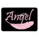 Este é um doce design de anjo que ficaria excelente em roupa e presentes. O texto "Angel" com pena e halo é desenhado em tons de rosa.