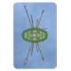 Um par de lanças propulsoras de larvas de longa-forma e um par de dardos mais leves e mais curtos são exibidos atrás de um antigo escudo oval Celta nesta ilustração original de Richard H. Fay. A design do escudo baseia-se, em parte, nos escudos Celta representados no Arco Triumphal de Orange, França.