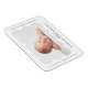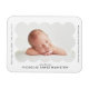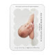 Ímã de anúncio de nascimento moderno com a foto do seu bebê aninhada dentro de uma moldura branca escalonada. Personalize o ímã de anúncio de nascimento branco adicionando o nome do seu bebê e informações adicionais em letras pretas.