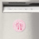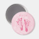 Um imã de anúncio de nascimento de uma menina com pegadas rosa giras contra um fundo rosa macio. Personalize adicionando o nome da sua menina ao texto personalizável que diz: É uma menina. Perfeito para um chá de fraldas.