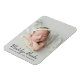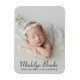 Compartilhe a chegada da sua bebê com este ímã de anúncio de nascimento de foto elegante. O retrato favorito do seu recém-nascido é exibido com o nome da bebê em belo script e detalhes do nascimento em carvão abaixo. Um design limpo e atemporal que familiares e amigos podem exibir como lembrança por anos. A cor do texto é totalmente personalizável para combinar com sua foto.