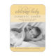 Anuncie a chegada do seu bebê à família e amigos com este simples anúncio de nascimento do ímã fotográfico "bem-vindo". Cor de fundo amarela clara do ouro com texto de cinza de pewter quente. Nota, a cor de fundo pode ser personalizada para coordenar com a sua fotografia.