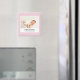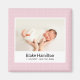 Imã de geladeira de anúncio de nascimento de menina personalizada com uma foto, seu nome e estatísticas de natalidade. Design cor-de-rosa com um padrão moderno de verificação.