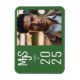 Melhore seus anúncios de graduação com ímãs de lançamento personalizados. Basta adicionar o monograma do formando, foto da sua escolha e ano de aula. Modelo fácil de usar. Cor verde. Mostrada na orientação horizontal (ou paisagem). Use a modelo para personalizar.