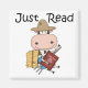 Leia T-shirts, capuzes, canecas, cartões, autocolantes, botões, ímãs, mousépias, jornais, guardas e outras roupa de leitura e presentes que promovem a leitura de uma forma fofa! Uma vaca com chapéu de palha e garfo de jarra descansa contra um fardo de feno com um livro!