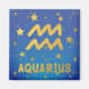Íman personalizado para "Aquário" com símbolo zodíaco ouro, estrelas douradas e fundo de gradiente azul.